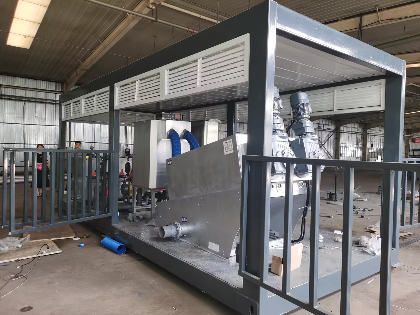 污泥需要及時(shí)或臨時(shí)處理像污泥需要緊急處理,但污泥量又特別大需要處理一兩個(gè)月的時(shí)間租賃設(shè)備成本高,現(xiàn)場(chǎng)還要雇人安裝等問(wèn)題費(fèi)用高不劃算,可以考慮這種集裝箱式疊螺污泥脫水機(jī)